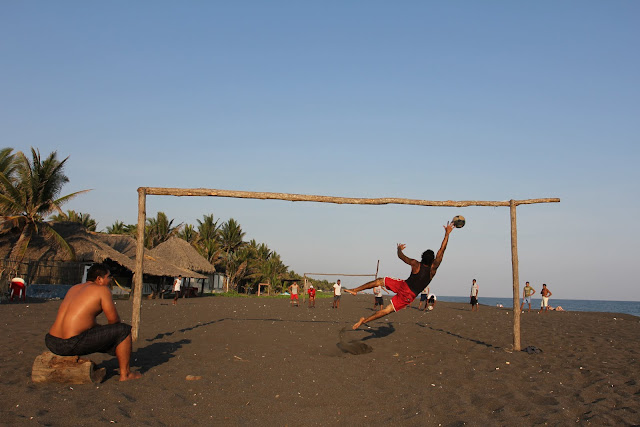 As the sun fell on Monterico, a large group of men and women, and children gathered near the hotel where I stayed to play soccer and volleyball on the beach.